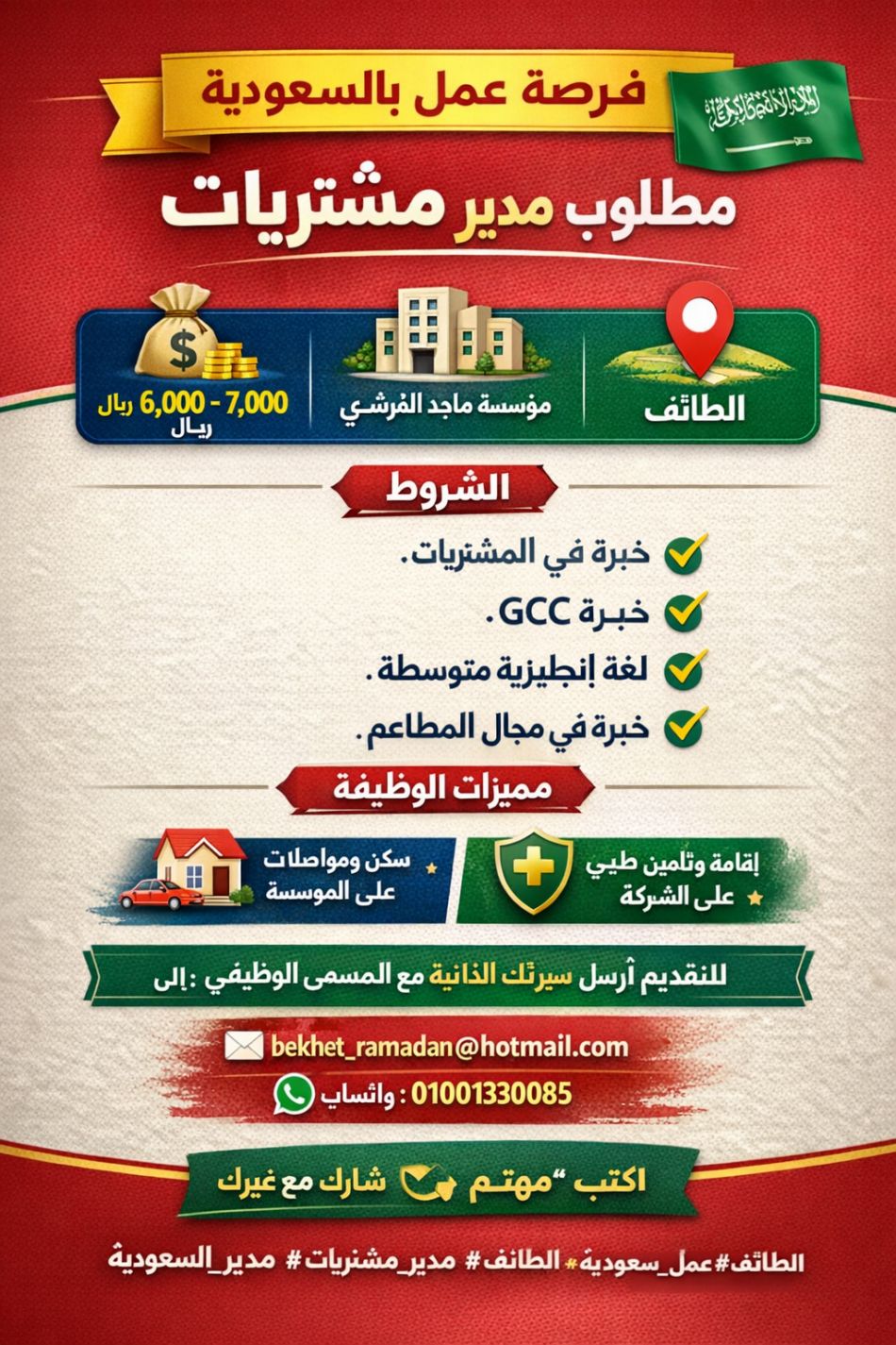إعلان مدير مشتريات – الطائف، السعودية